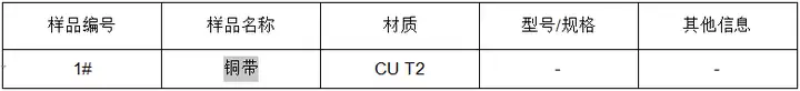 1、铜带成分分析-铜成分鉴定:通过仪器分析手段确定样品的成分及其比例后,通过对照所提供的材料牌号对应标准的要求,判定其是否符合标准要求。